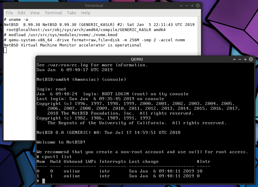 all running via Qemu+NVMM.